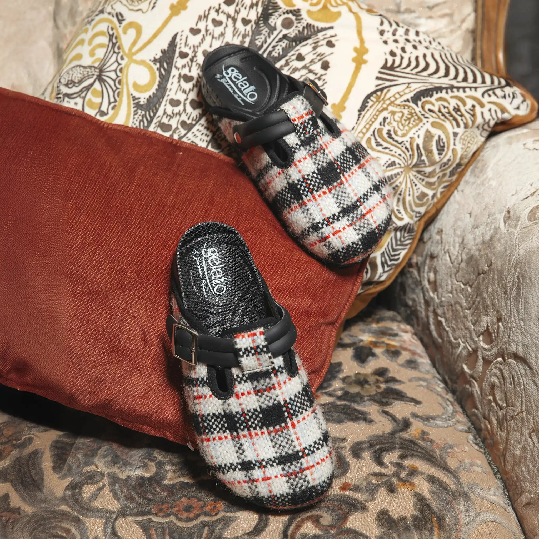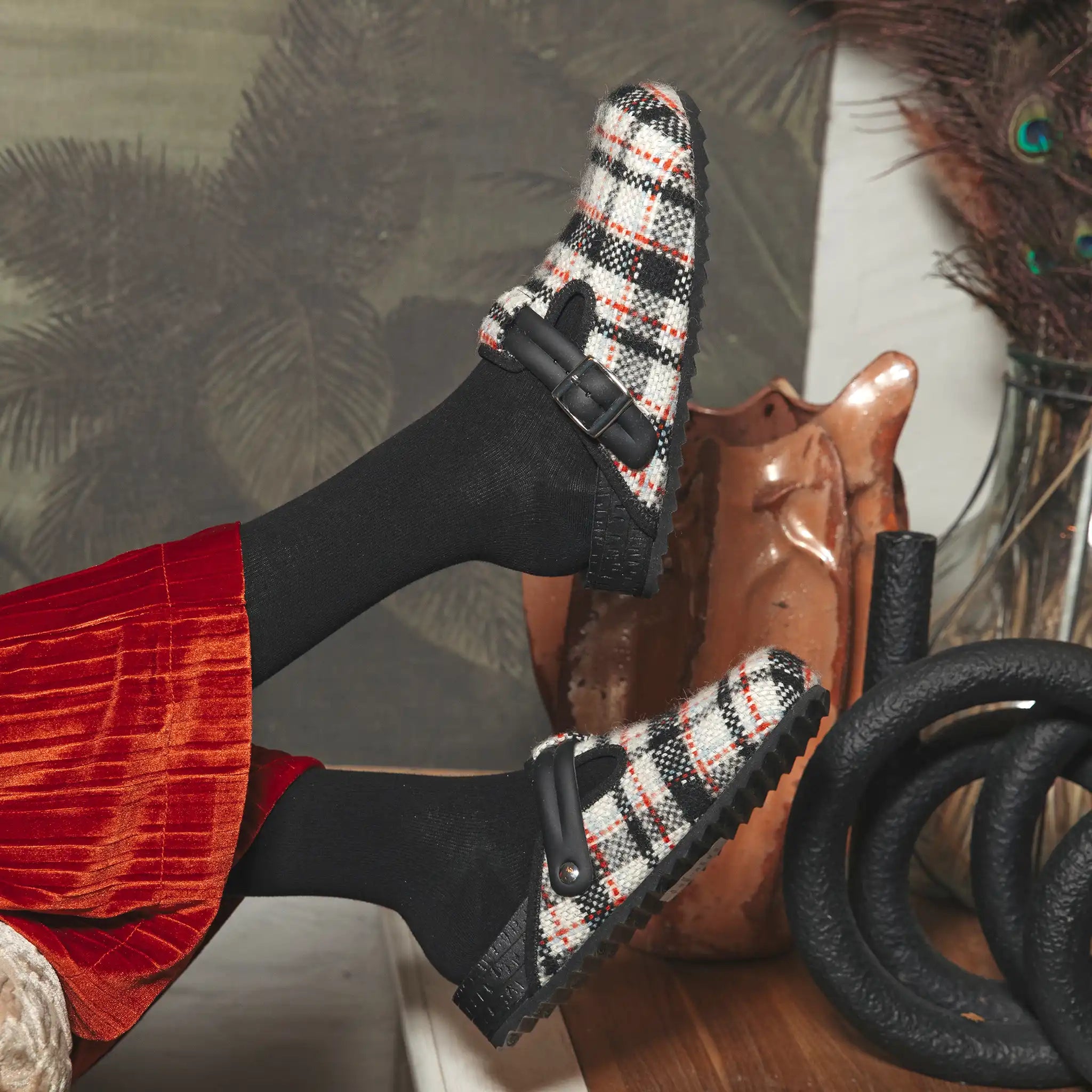 Suola: Suola antiscivolo, flessibile e leggera, studiata per garantire stabilità e sicurezza su ogni superficie. La particolare struttura della suola assicura un’ottima aderenza anche su pavimenti lisci o bagnati, offrendo una camminata sempre stabile e sicura. Realizzata con materiali resistenti e ammortizzanti, accompagna il piede in modo naturale, assicurando comfort e libertà di movimento a ogni passo.