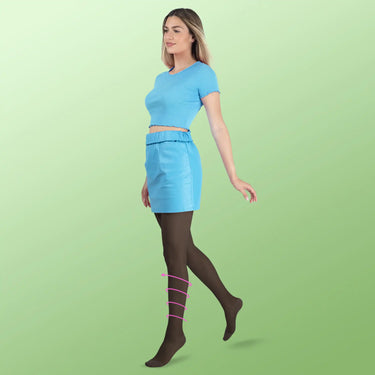 Calze Preventive leggera compressione graduata 10-15 mmHg. Indicata per problemi circolatori leggeri, tendenza alle vene varicose e per le donne in gravidanza. Maglia Rete - 83% Poliammide, 17% Elastan - Sono dotati di punta e tallone rinforzati a doppio strato e di un corpino elastico contenitivo confortevole.