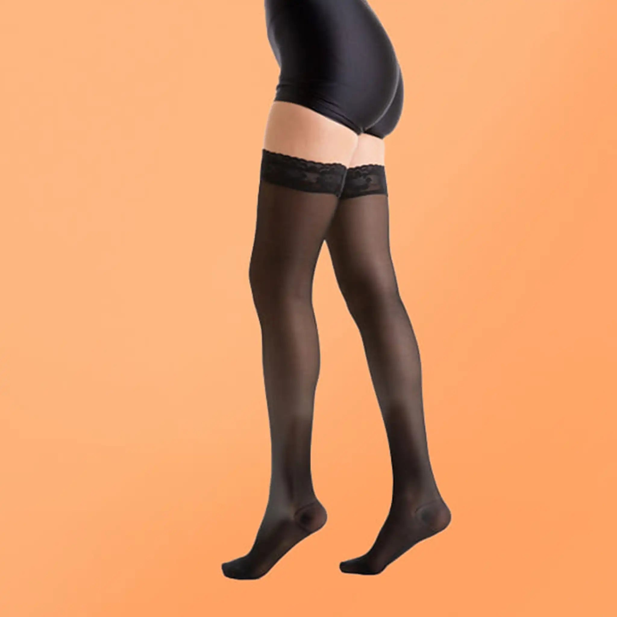 Calze Preventive leggera compressione graduata 10-15 mmHg. Indicata per problemi circolatori leggeri, tendenza alle vene varicose e per le donne in gravidanza. Maglia Rete - 83% Poliammide, 17% Elastan. Balza elastica fantasia con silicone , rimane ben salda alla coscia donando sempre comfort.